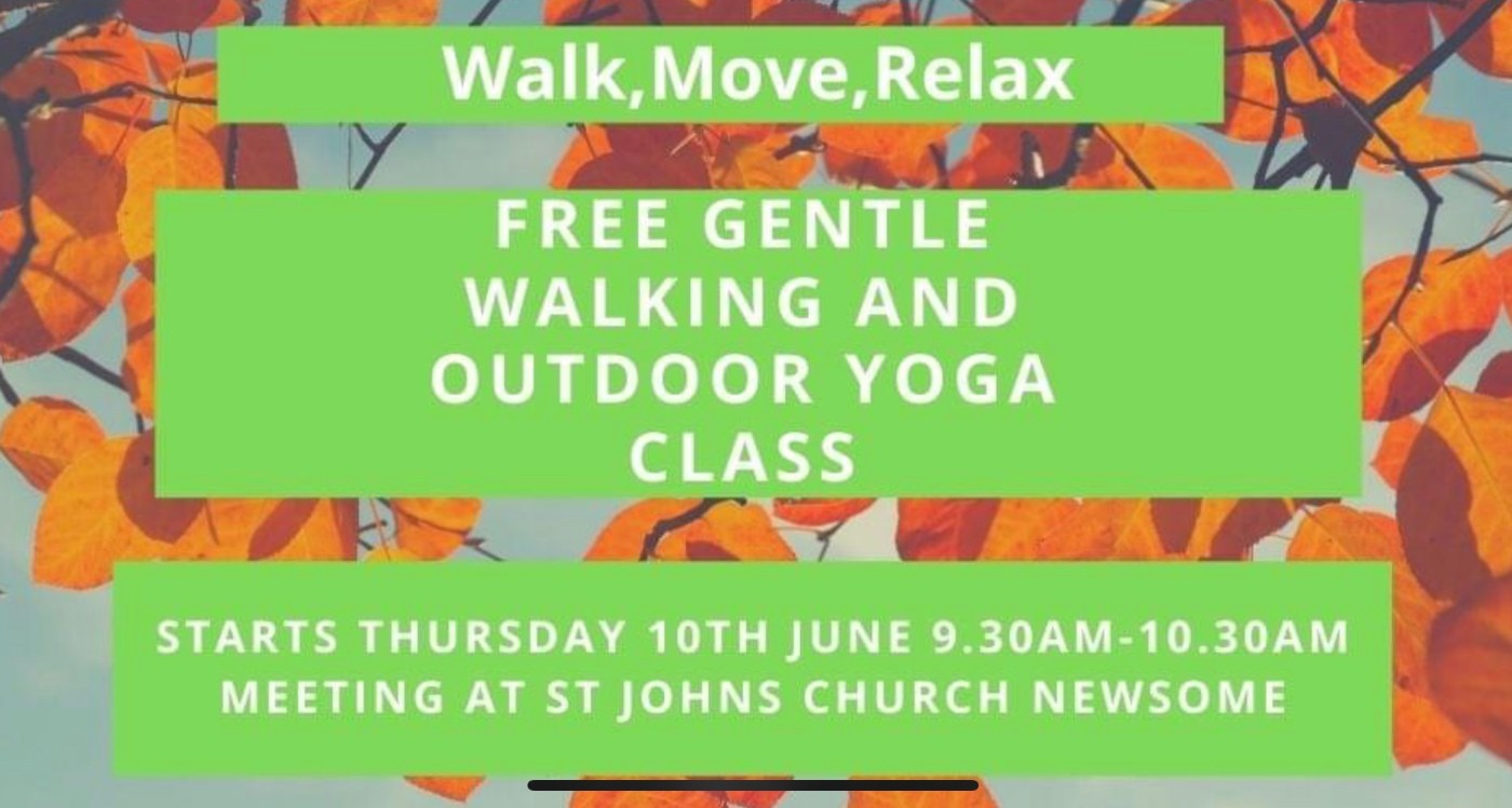 Starting on Thursday 10th June 2021, 9.30am to 10.30am. Weekly class, for six weeks. Includes a chance to chat, breathing exercises and gentle yoga moves. Meet at the entrance to St. John’s Church, Jackroyd Lane, Newsome.