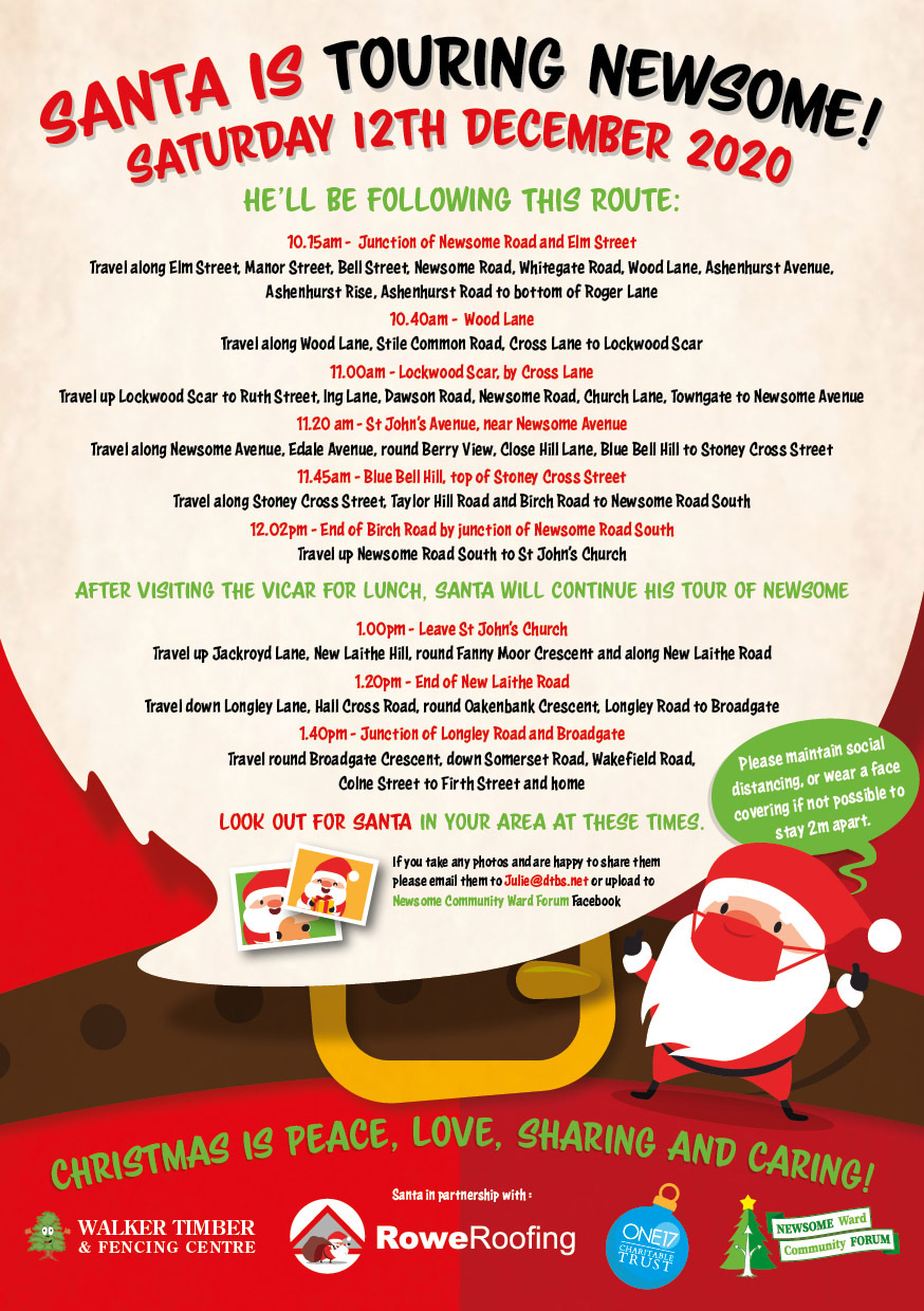 Santa in partnership with: Walker Timber & Fencing Centre, Rowe Roofing, One 17 Charitable Trust, Newsome Ward Community Forum